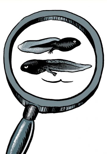 Crapaud et grenouille : Une boule sombre munie d’une nageoire en guise de queue ? C’est un têtard d’anoure, c’est-à-dire de grenouille ou de crapaud. Ceux des crapauds communs sont plus noirs et se déplacent en bancs serrés comme des sardines.