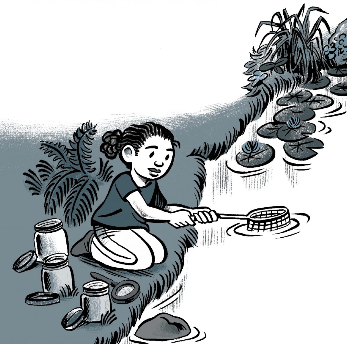 Avec une épuisette à main d’aquarium, fouille délicatement le fond de quelques petits points d’eau proches de chez toi. Fais glisser avec précaution les petites bêtes aquatiques que tu as capturées dans des bocaux en verre transparent.