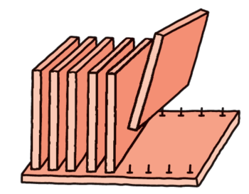 1- Cloue sur le fond tes 9 planchettes, en laissant 5 mm entre deux !