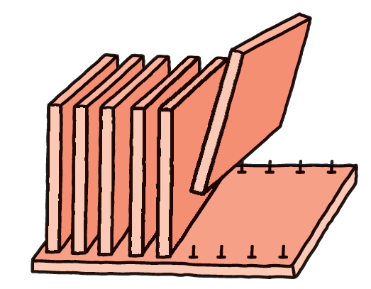 1- Cloue sur le fond tes 9 planchettes, en laissant 5 mm entre deux !
