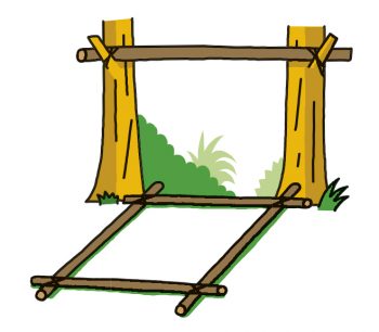 - Avec la corde, fixe la branche droite entre les 2 arbres à environ 1,60 m du sol.