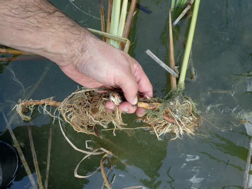 Pas de panique, chacun des stades de l’évolution naturelle du point d’eau accueille un cortège d’êtres vivants spécifiques. Mais si comme moi vous constatez que la zone d’eau libre se réduit un peu plus chaque année, il est temps d’agir. Votre mission ? Limiter en douceur la végétation aquatique. Enfilez vos bottes !