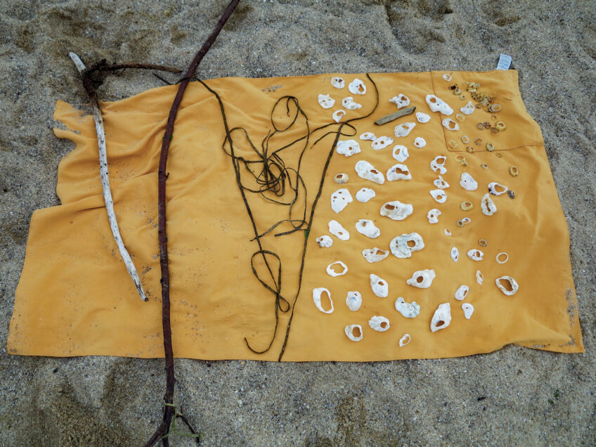 Focalisez vos recherches vers le haut du rivage, là où des algues entremêlées se dessèchent petit à petit au soleil. Quelques morceaux de bois flotté ont échoué ici après un long voyage au gré des courants. Des plumes usées par le sel émergent du sable, abandonnées par de mystérieux oiseaux.