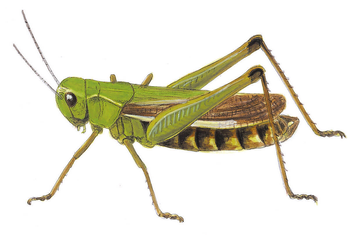 Oreilles grandes ouvertes et yeux écarquillés, les enfants recherchent les solistes dissimulés parmi les graminées. En voilà un ! Campé sur son herbe, le petit musicien camouflé frotte rapidement ses fémurs sur la nervure saillante de ses ailes, un peu comme le ferait un archet sur les cordes d’un violon. Alerté par les mouvements des deux enfants, le voici qui plonge dans la végétation.