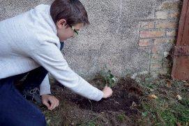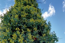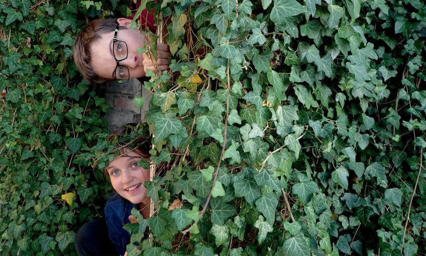 Quel est donc ce raffut ? Là, sur le vieux mur en face de la maison, les feuilles sombres et cirées d’une liane remuent étrangement dans une symphonie de petits cris aigus. Camille a reconnu la plante touffue, c’est un lierre. « Idéal pour se fabriquer une couronne ! »