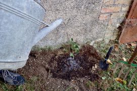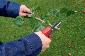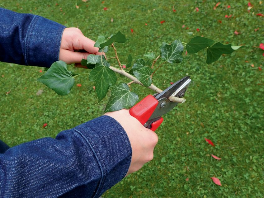 Le lierre possède deux types de feuilles : ovales ou lobées. Choisissez un rameau avec des feuilles triangulaires (lobes à 3 ou 5 pointes) pour la bouture. Arrosez régulièrement la première année et en cas de sécheresse, puis limitez la concurrence avec les herbes en recouvrant le sol de paillis au pied du rameau.
