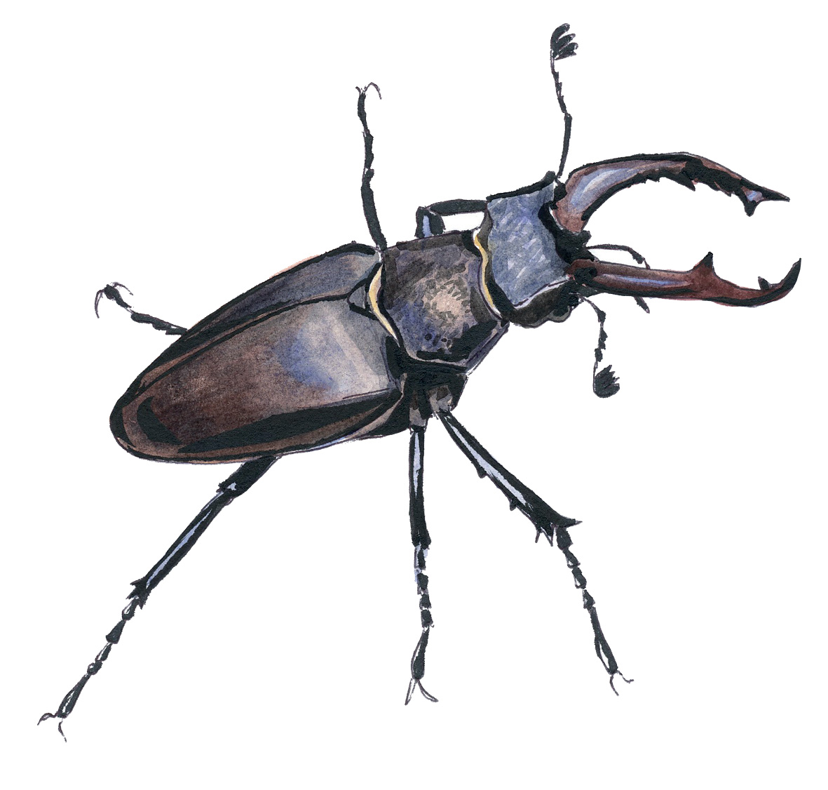 Le lucane cerf-volant pond ses œufs dans les grosses bûches, pour peu qu’une partie soit en contact avec la terre. La larve est un imposant ver blanc qui passe trois à six ans dans le bois avant de se transformer en un coléoptère surprenant, un des plus grands d’Europe.