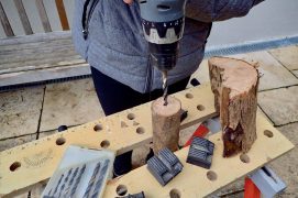 - Préférez du bois sec et dur pour la bûche à percer, comme le chêne, le hêtre, le châtaignier, le charme ou l’acacia. Pins et sapins sont à éviter, car ils gonflent à l’humidité.