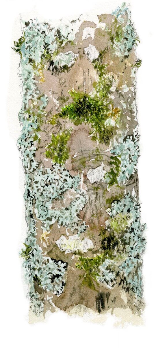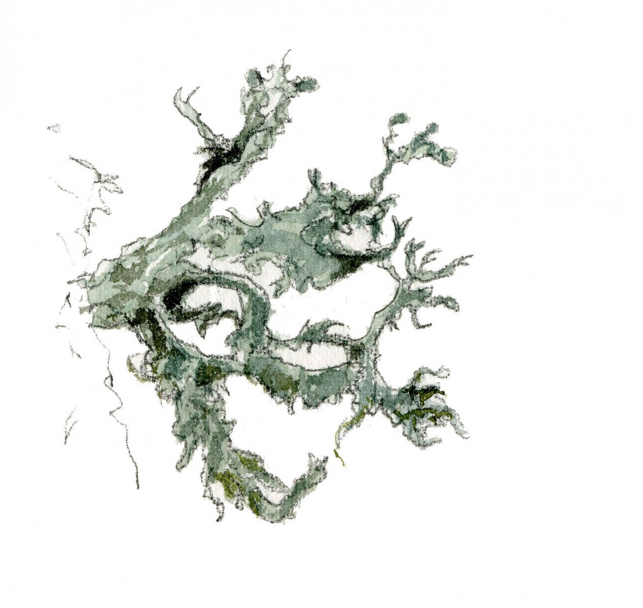 Les lichens poussant sur les troncs et les branches, comme Parmelia sulcata ou Pseudevernia furfuracea, sont nommés corticoles.