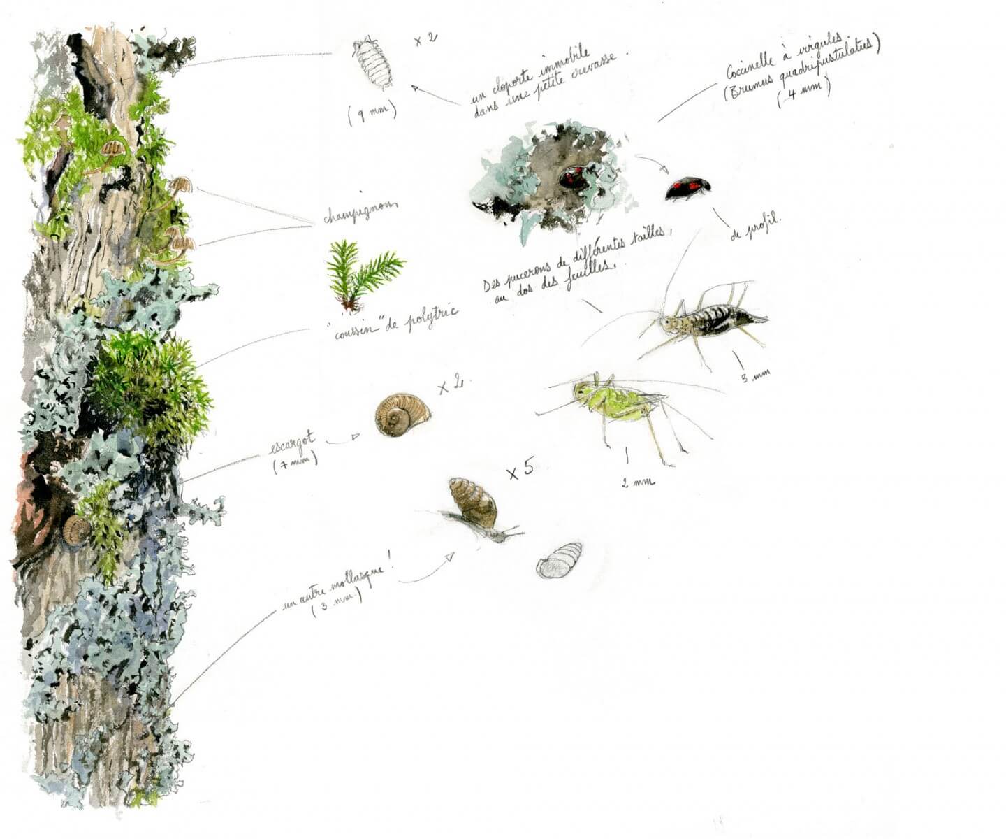 Découvrez la faune et la flore qui vit sur l'écorce et les feuilles de l'érable. Au programme : insectes, cloportes, escargots et lichen.