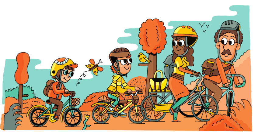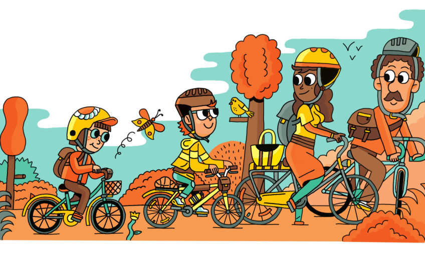 - Vérifie ton vélo : pneus gonflés, freins et sonnette efficaces, chaîne graissée.