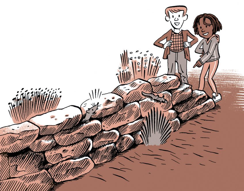 - Musaraignes, mais aussi lézards et crapauds, adorent les murs sans ciment. Réunis des pierres plates : un muret de 30 cm de large et 50 cm de haut, voire moins, suffit. Côté longueur, à toi de voir !