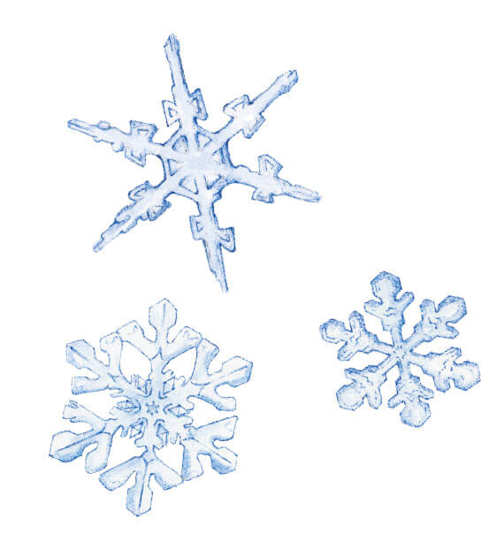 Ce véritable miracle de la nature naît à cinq ou six mille mètres d'altitude de la rencontre entre une goutte d'eau et une minuscule poussière qui favorise sa congélation. En gelant, l'eau devient un cristal hexagonal qui allonge ses branches par la réunion d'autres gouttelettes. Ainsi naissent les flocons. Et voici maintenant comment nous pouvons l'admirer de près.
