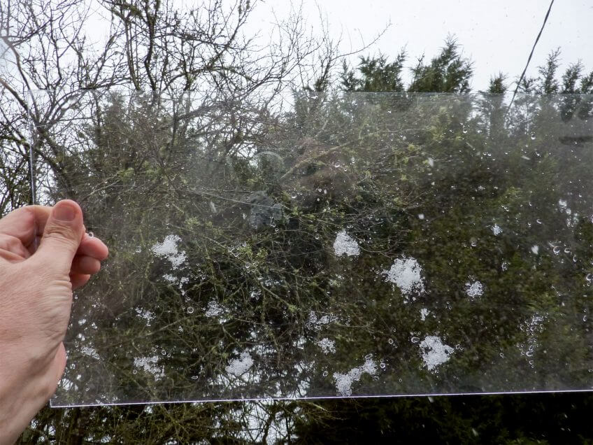 Enfin, il neige! Mais comment faire pour voir les flocons de près et les photographier ? Facile, munissez-vous d'une plaque de Plexiglas et d'une loupe.