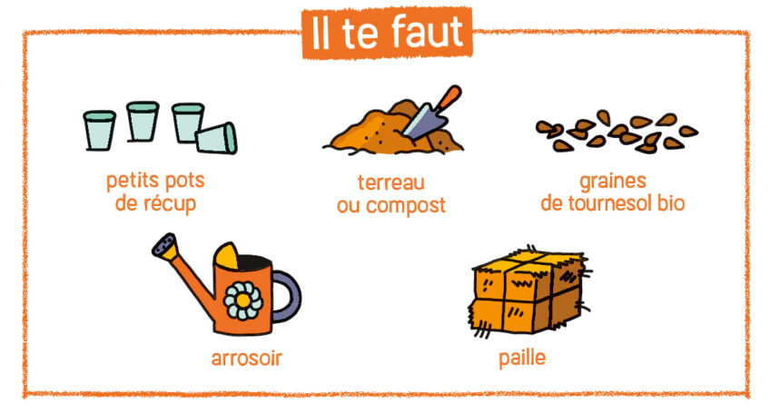 À chacune des 3 étapes, pense à arroser tes tournesols à l’eau de pluie : la terre doit être toujours humide, mais jamais noyée.