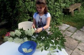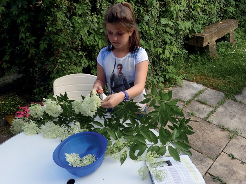 Mi-mai, un effluve enivrant embaume la haie. Guidée par son odorat, Camille s’approche d’un arbuste paré d’une multitude de fleurs blanches. « On dirait le parfum des litchis », s’exclame-t-elle. Le sureau noir, car c’est bien lui le responsable, commence tout juste à fleurir. Ses ombelles parfument l’atmosphère contrastant agréablement avec l’odeur âcre de ses rameaux.