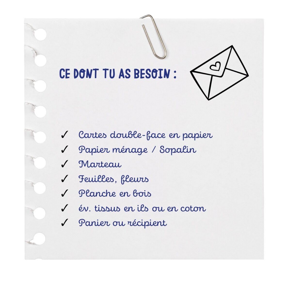 Imprime des cartes de voeux en utilisant les pigments de feuilles ou de fleurs que tu trouves dans la nature.