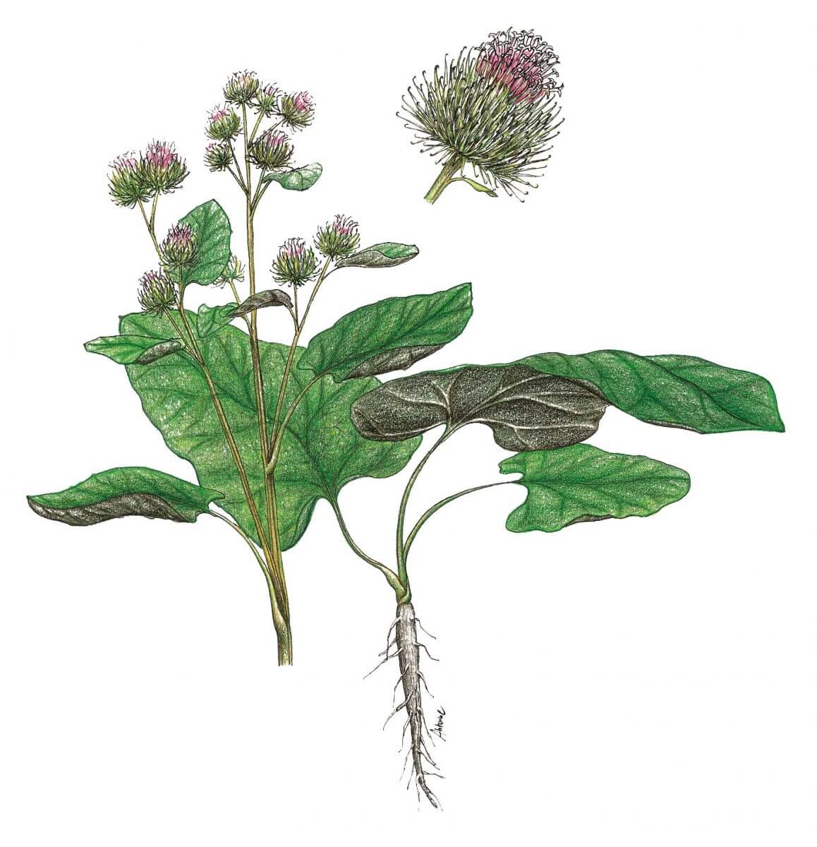 La grande bardane qui forme des fourrés impénétrables en été au bord des chemins est bien connue comme étant la plante qui inspira à l’ingénieur suisse George de Mestral l’invention du Velcro. Ce qu’on sait moins, c’est que pratiquement tout se consomme dans ce végétal généreux. Les tiges, les côtes des feuilles et même les fleurs. Quant à sa racine autrefois torréfiée comme substitut du café, elle est extrêmement prisée dans la cuisine japonaise.