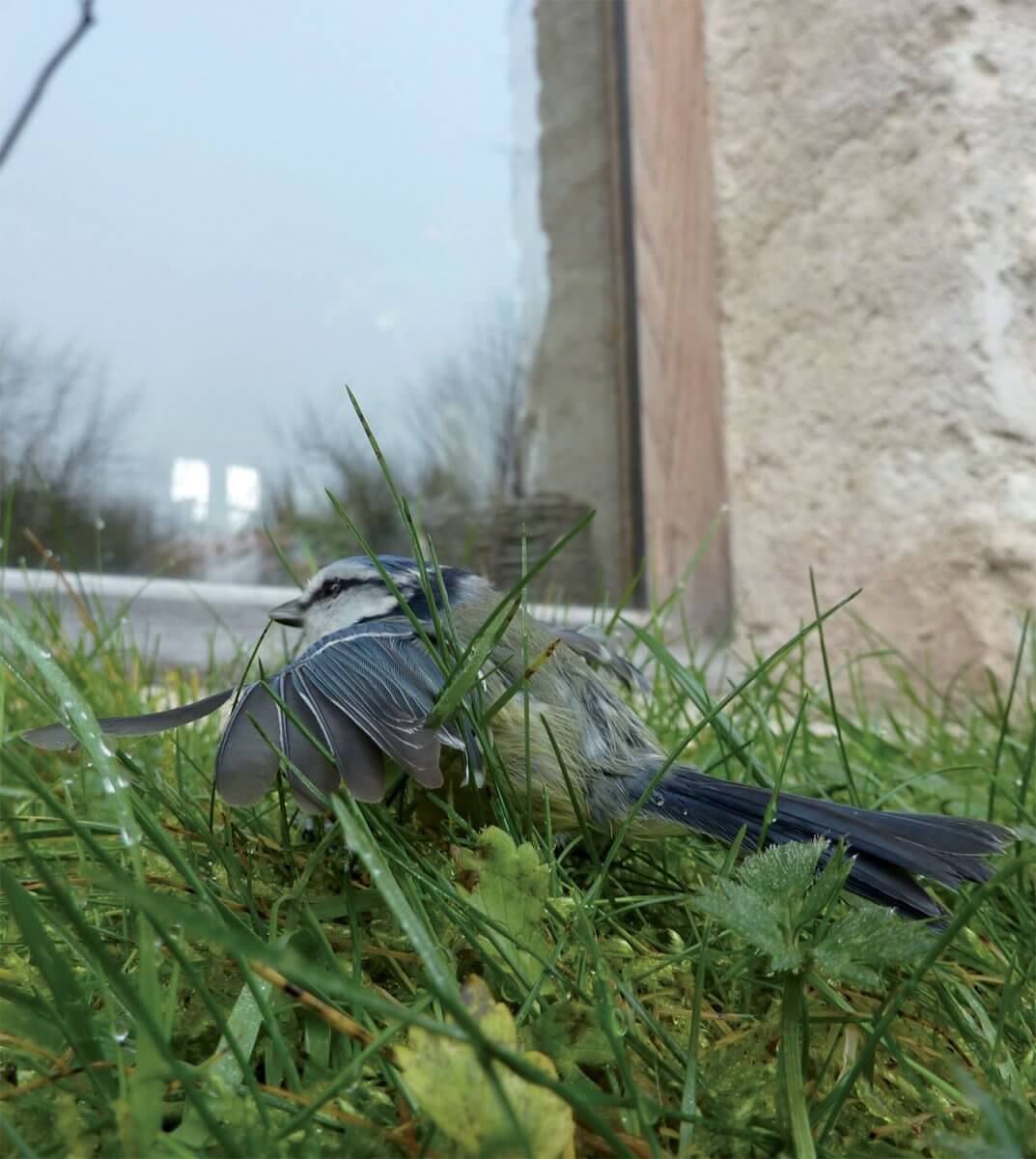 1 | Repérez quelles sont vos fenêtres ou baies meurtrières. Les oiseaux y voient un arbre par réflexion ou par transparence à travers une autre ouverture. Dans les deux cas, la collision est violente et la mort fréquente.