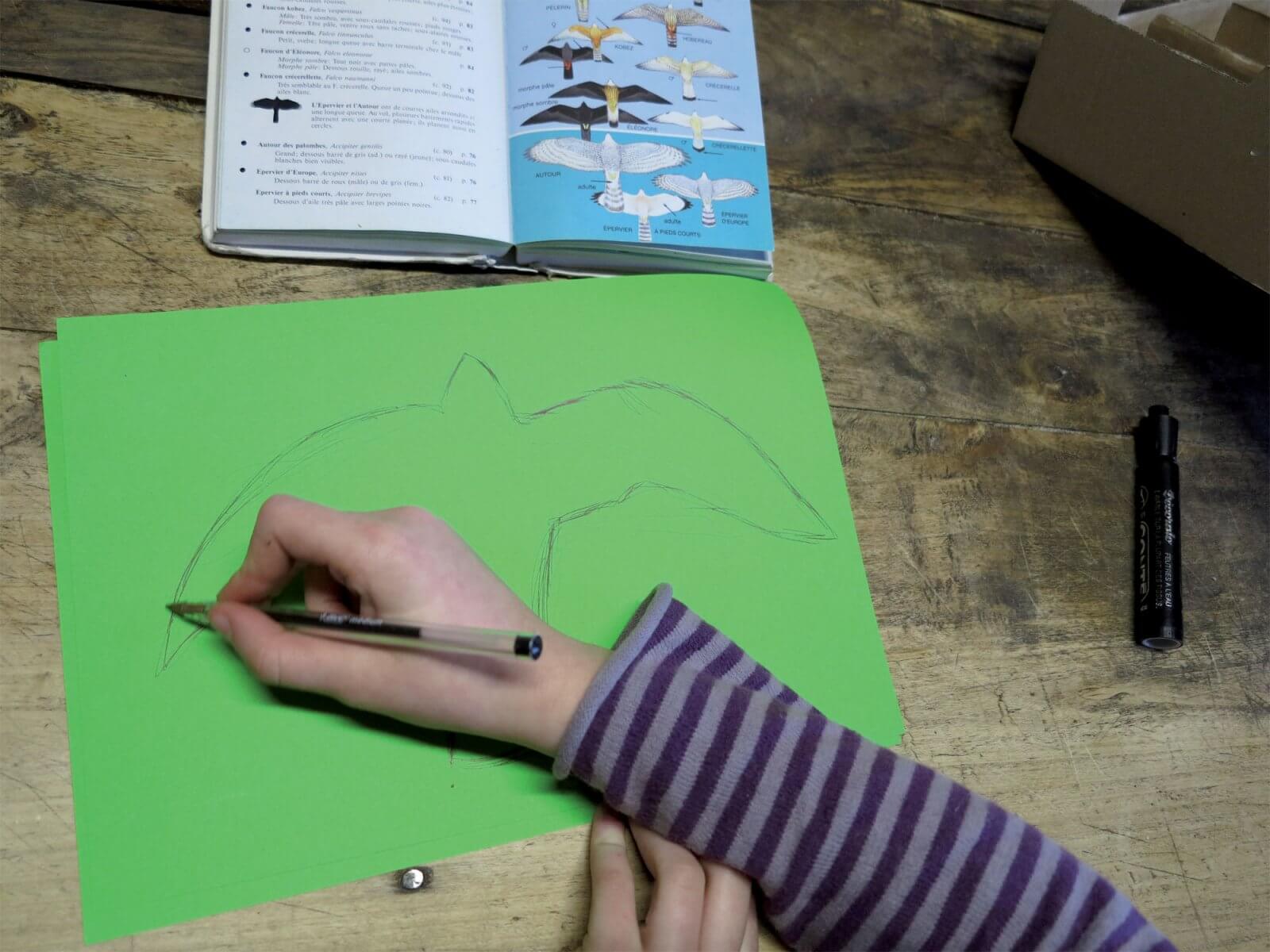 2 | Pour y remédier, tracez une silhouette de rapace sur une feuille cartonnée en vous aidant d’un guide ornithologique.