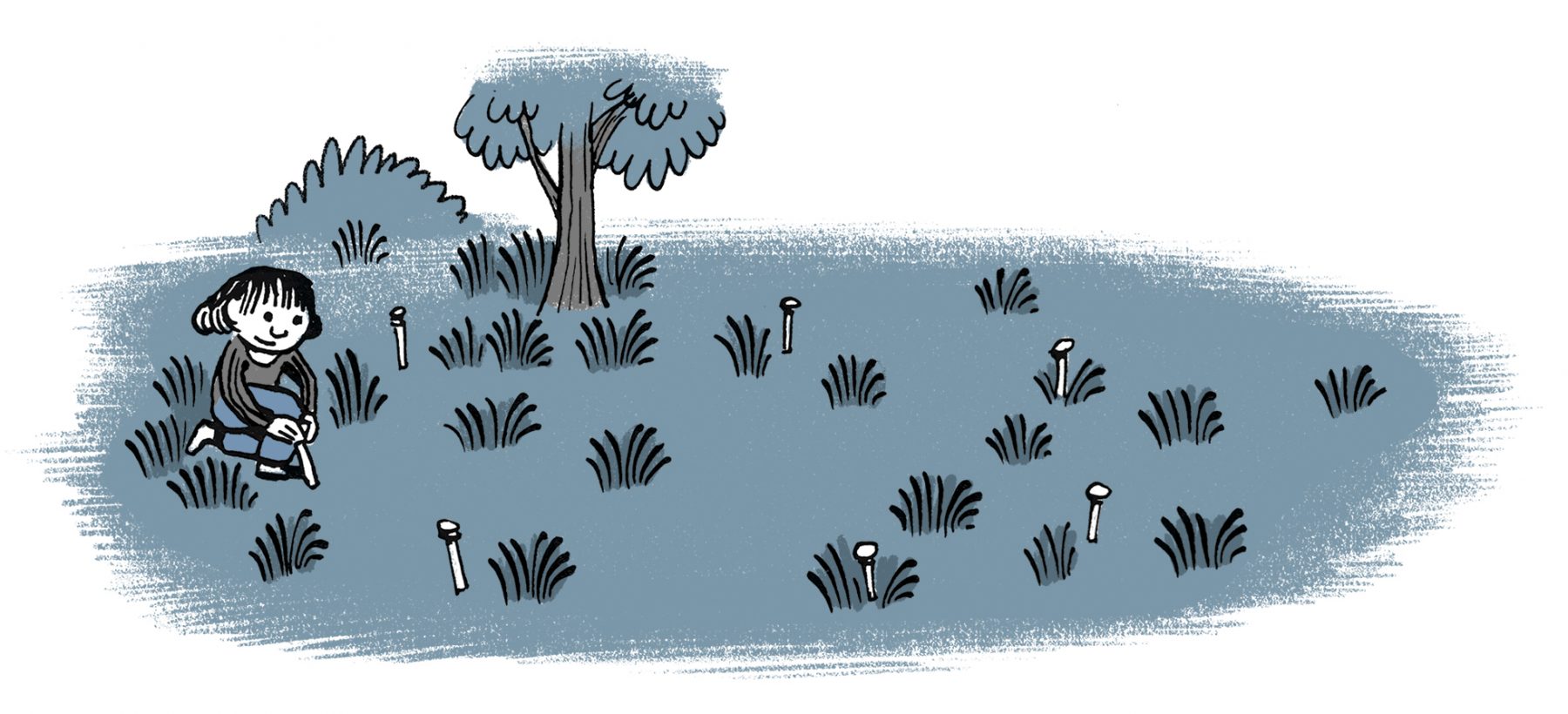 1.Choisis un endroit mi ombre, mi soleil. Délimite le pourtour avec des piquets. Si tu n’as pas trop de place, un bassin de 1,50 m sur 0,50 m de large suffit pour attirer les animaux aquatiques.