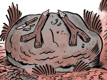 2- Ramasse deux bouts de bois en forme de fourches: taille-les avec ton canif aux mêmes dimensions.