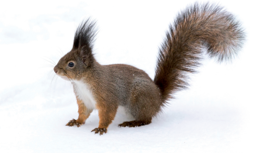 1) L’écureuil épluche les cônes avec ses dents mais laisse quelques fils sur toute la longueur.