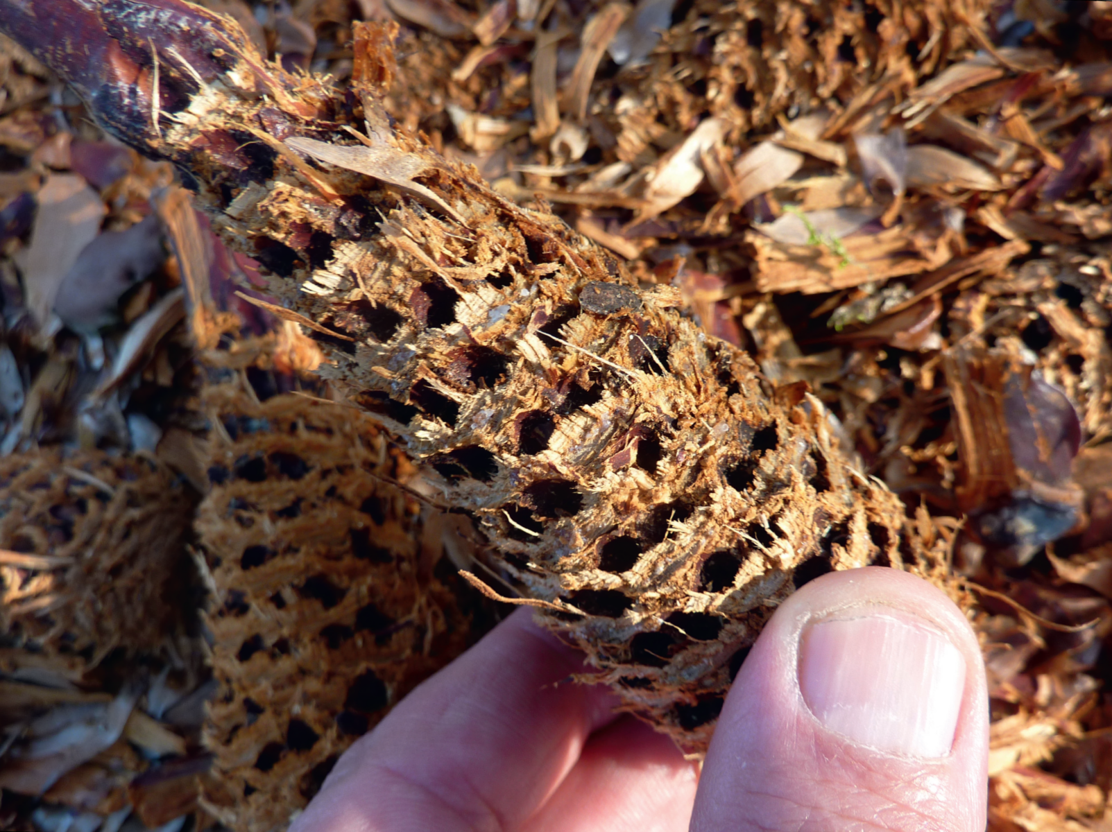 On trouve fréquemment des pommes de pin au pied des conifères. Pics, écureuils et campagnols sont friands des graines implantées entre les écailles. Chacun a sa technique pour s’en emparer : bec ou dents sont leurs outils. C’est le moment de lancer votre enquête pour démasquer le coupable.