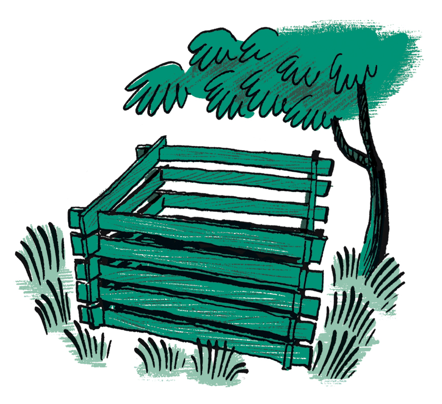 - Choisis un endroit semi-ombragé. Récupère un bac en forme de cube. Il existe des composteurs dans le commerce, mais un simple tas au fond du jardin fait aussi l’affaire !