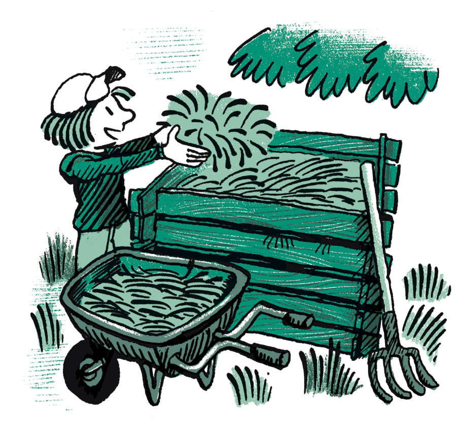 - Remue et retourne le tas régulièrement pour l’aérer et mélanger les déchets.